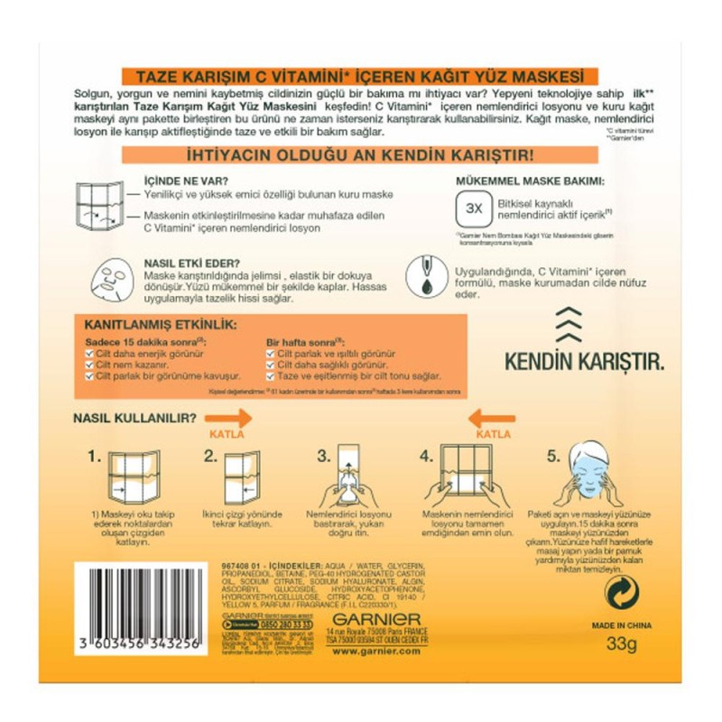Garnier Taze Karışım Kağıt Yüz Maskesi C Vitamini 33gr