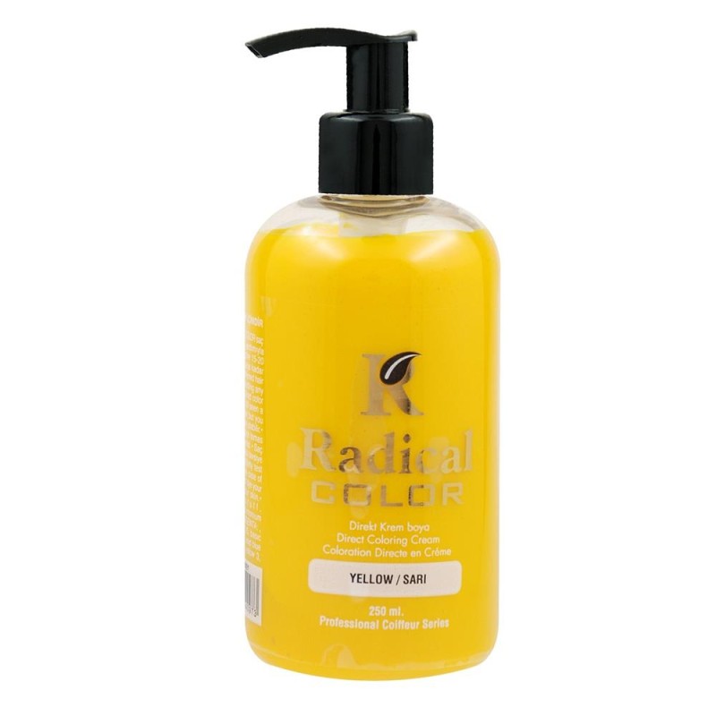 | Ürün Hakkında | Radical Color sarı saç boyası ile saçlarınızda enerjik, canlı bir görünüm yakalayabilirsiniz. Koyu renkli saçlarda boyayı uygulamadan önce boyanın daha iyi tutması için saç renginin açılması önerilir. Su bazlı yapıya sahiptir. Ortalama 7 ile 10 gün saçınızda rengi kullanabilirsiniz. Profesyonel kullanım içindir. |